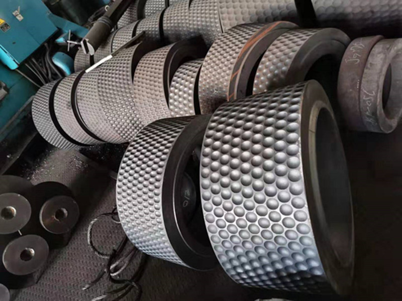 壓球機(jī)輥皮在與硬質(zhì)粉體接觸成型的過程中,除正常磨損外,表面經(jīng)常發(fā)生材料崩落( 又稱刷邊失效) ,特別是輥皮兩端尤為明顯。熱處理技術(shù)是提高輥皮使用性能的關(guān)鍵技術(shù),常規(guī)單液淬火工藝處理的輥皮,可以得到表面均勻的硬度分布; 但是輥皮在成型粉體的過程中,表面中間位置和邊部位置的受力不均勻,邊角位置擠壓粉末的過程中處于不對(duì)稱的受力狀態(tài),更容易產(chǎn)生刷邊失效。此外,單液淬火處理的輥皮還會(huì)產(chǎn)生較大的熱處理變形。由于壓球機(jī)的輥皮是成對(duì)使用的,熱處理后的形變量必然會(huì)影響裝配精度,終降低壓球機(jī)的使用壽命。